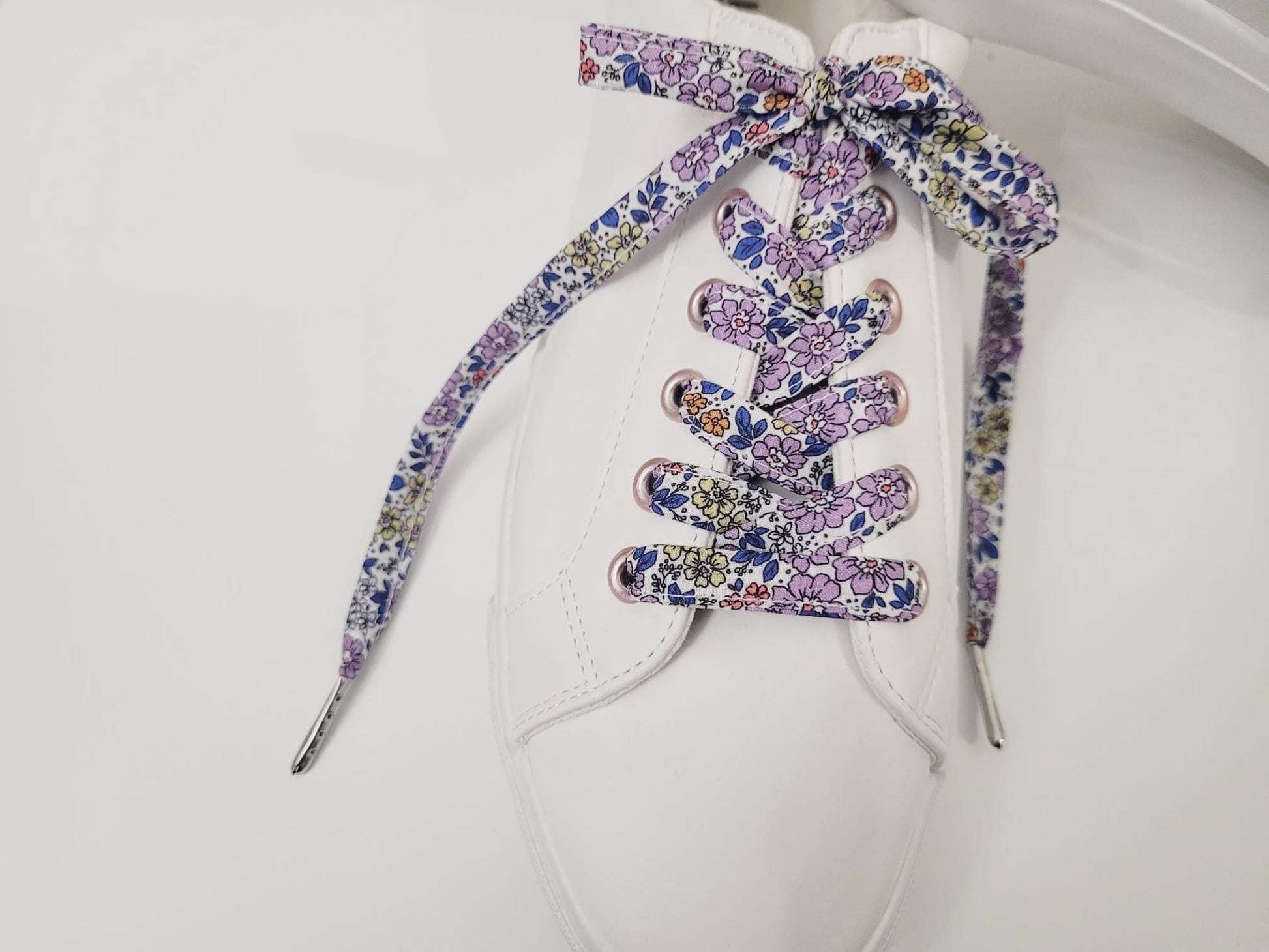 Sublimez votre tenue avec ses lacets en tissu fleuri.
