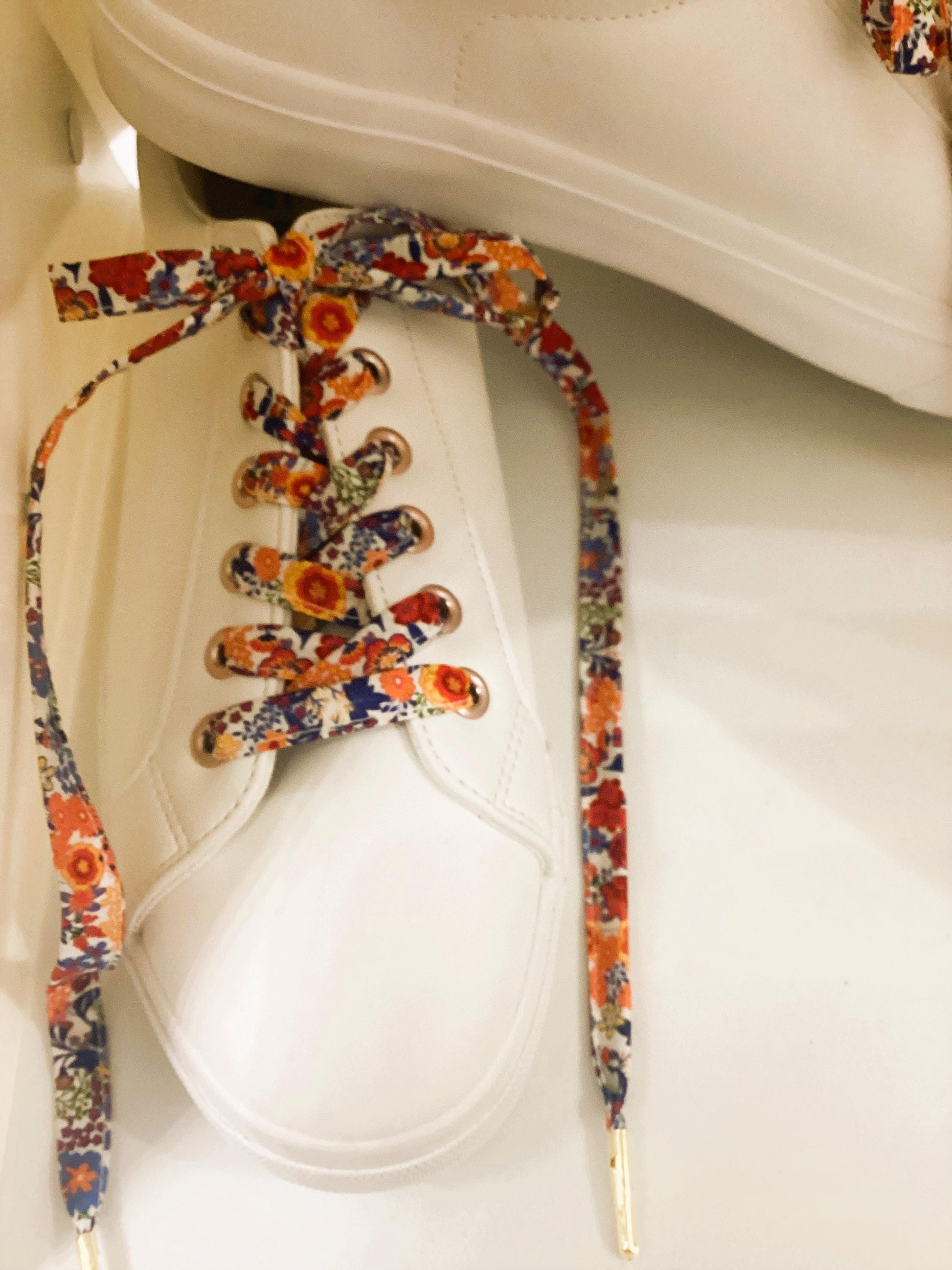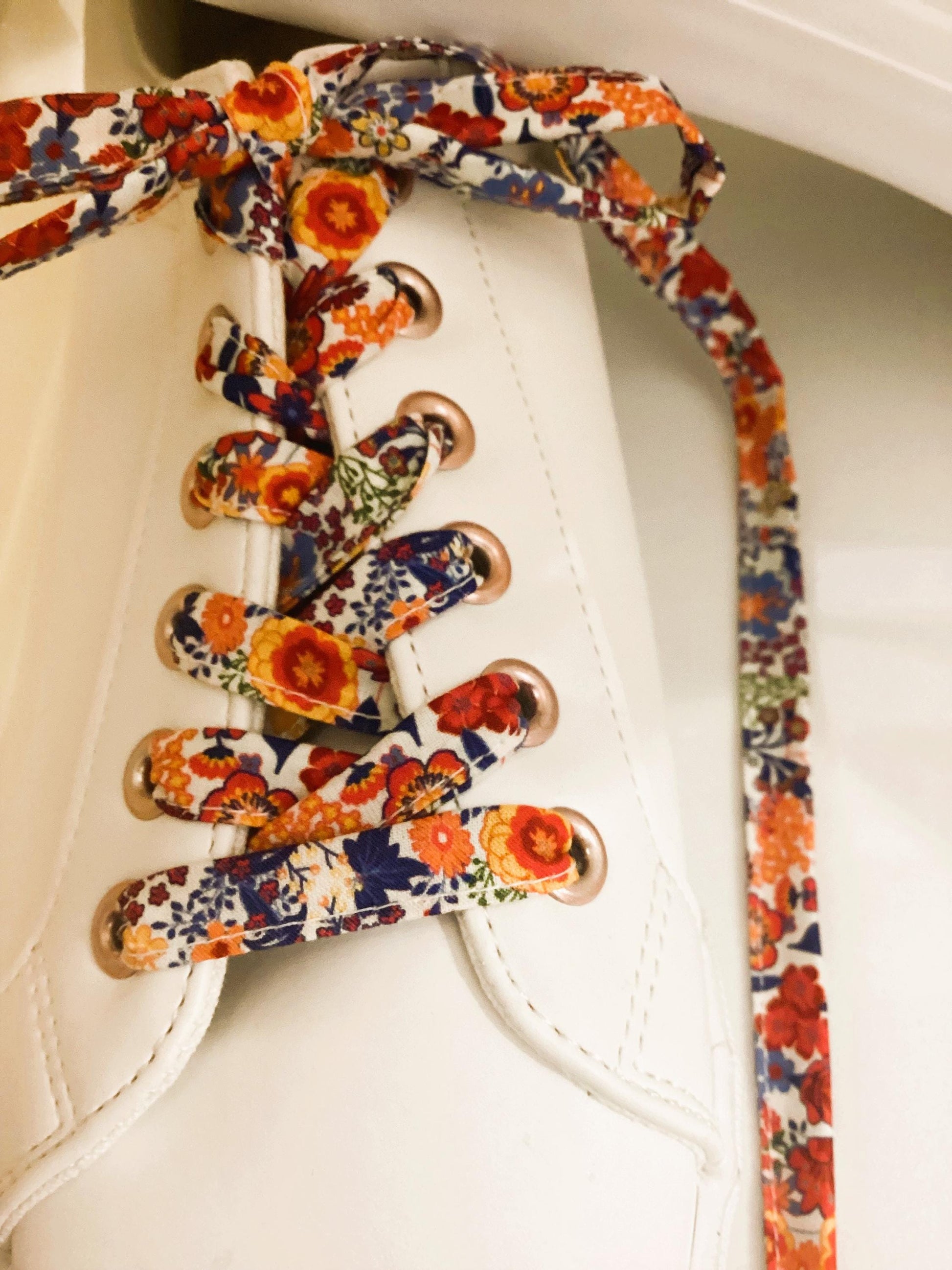 Sublimez votre tenue avec ses lacets en tissu fleuri.