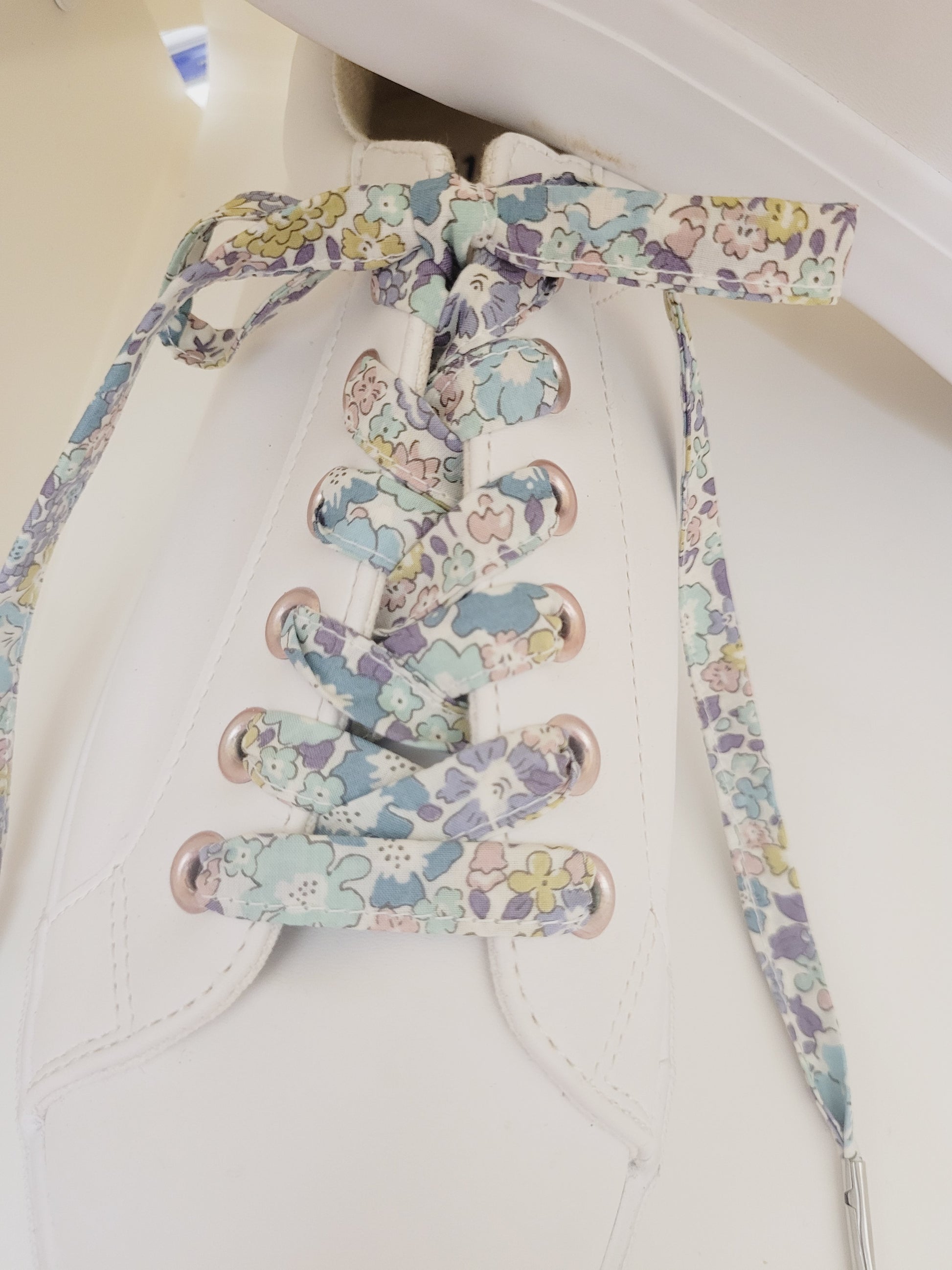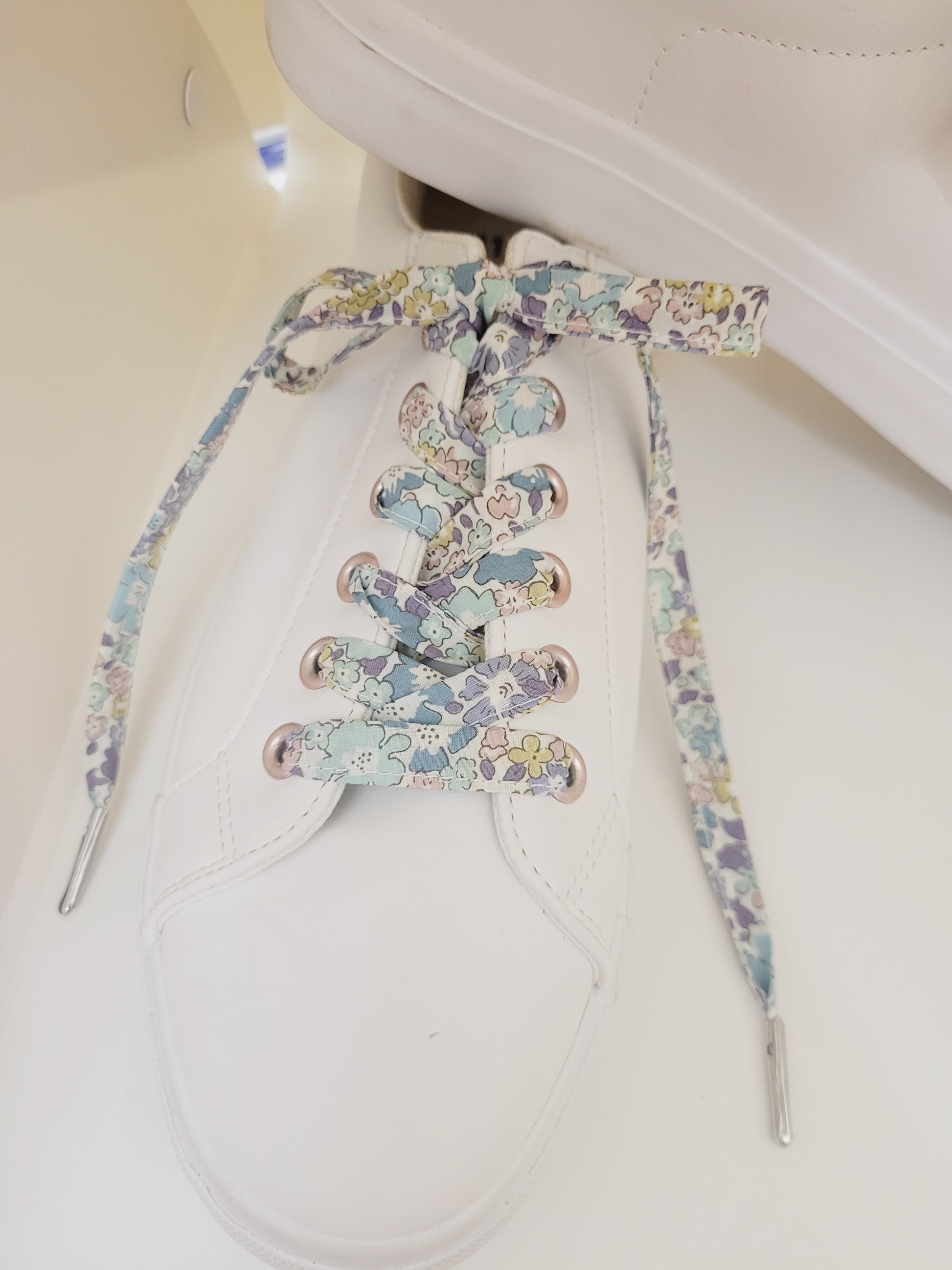 Sublimez votre tenue avec cette paire de lacets en tissu fleuri viscose bio.
