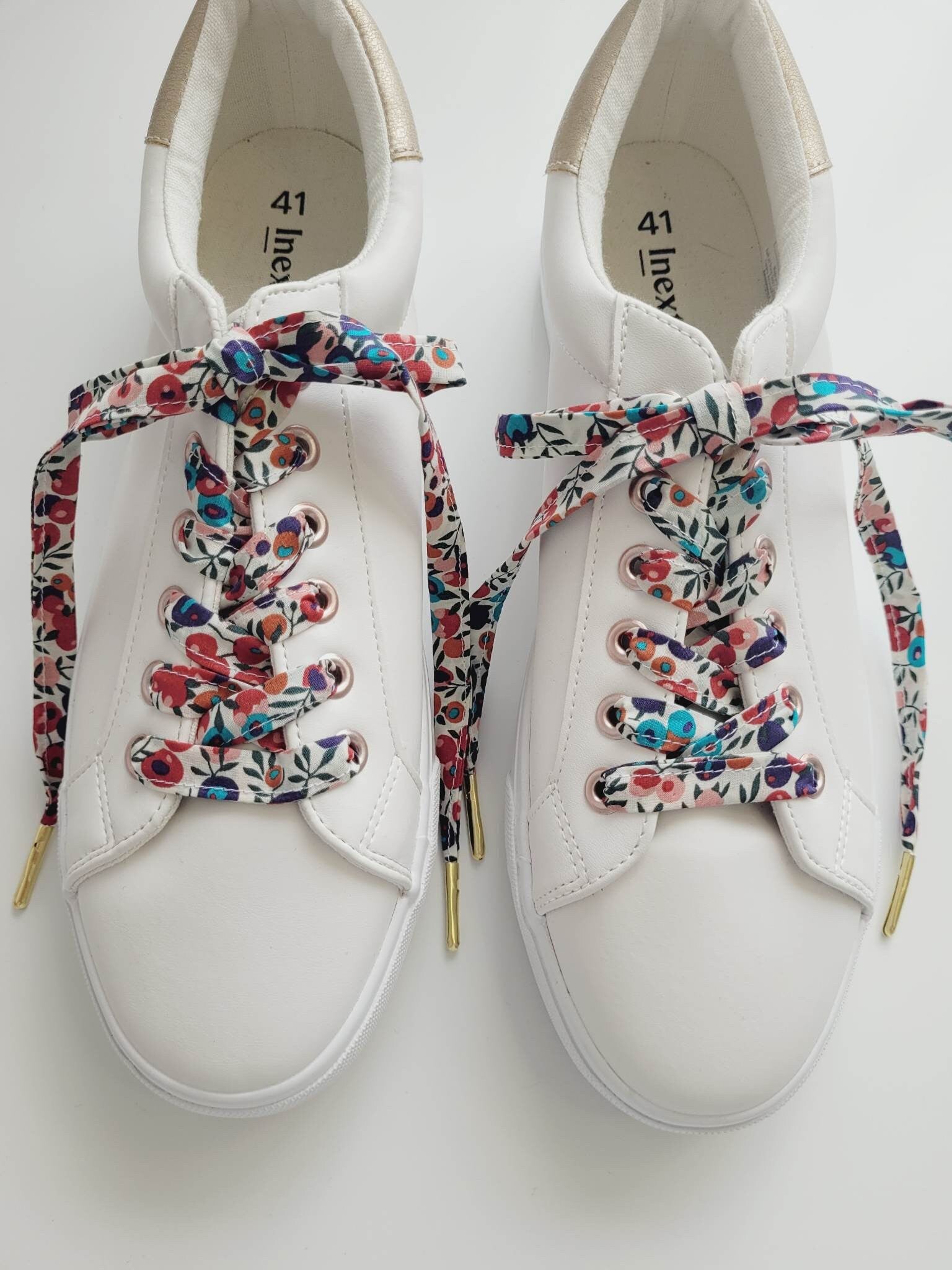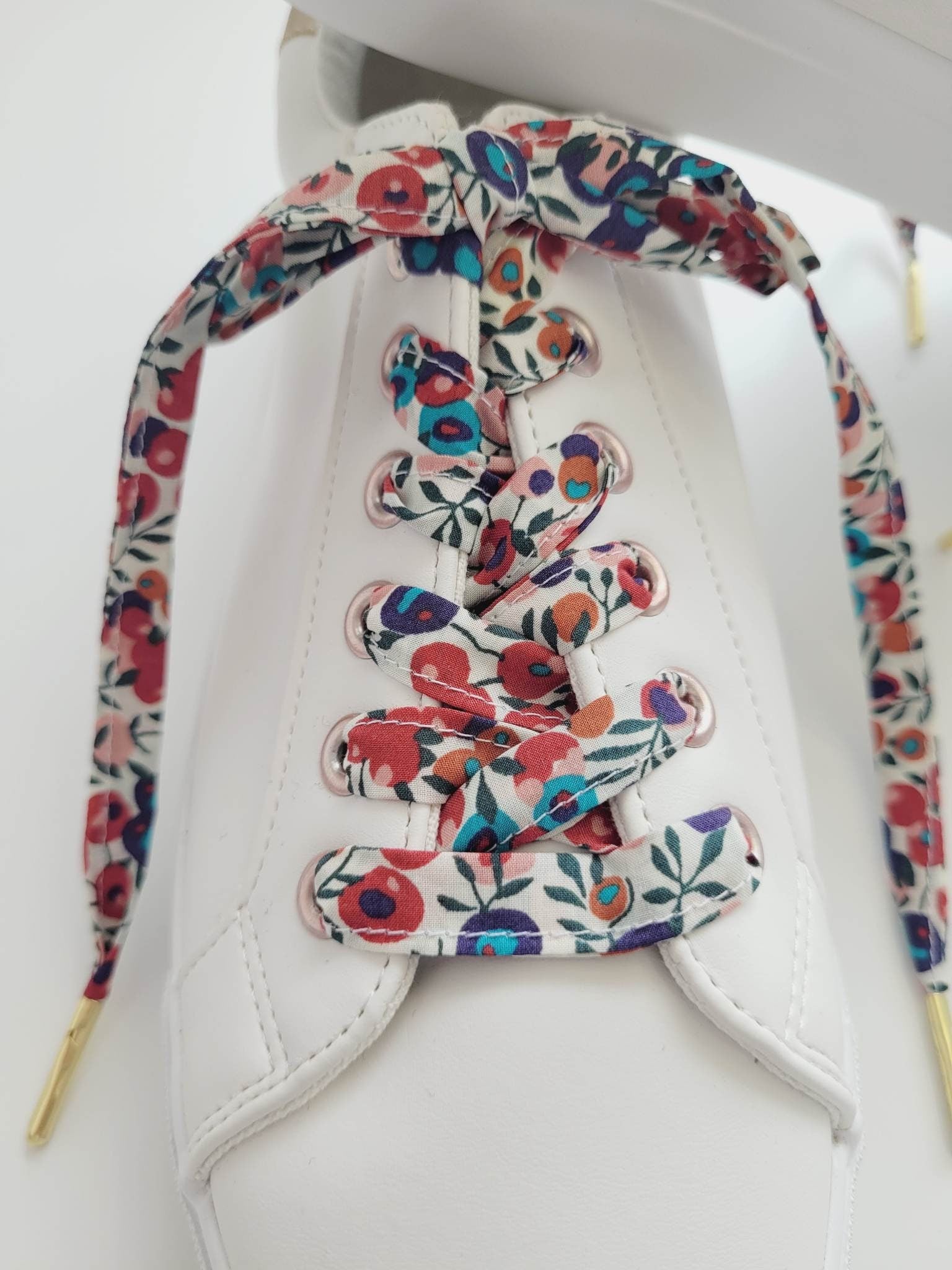 Sublimez votre tenue avec ses lacets fleuris liberty en coton .