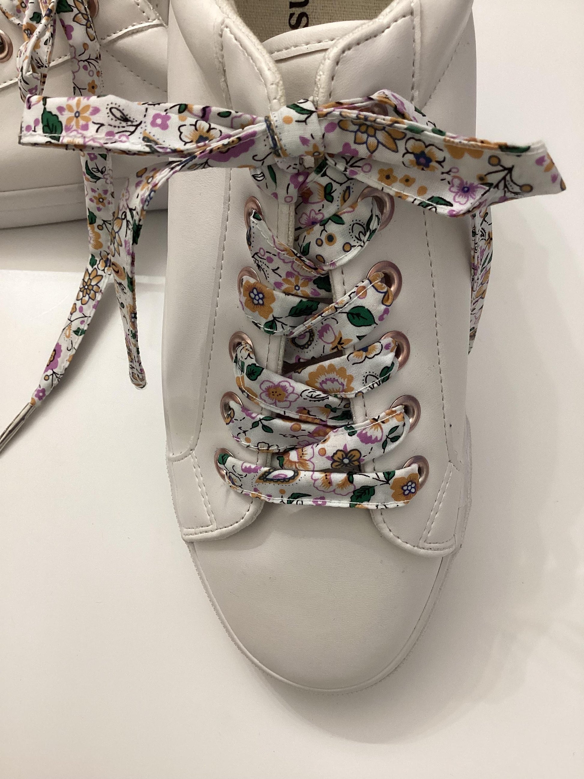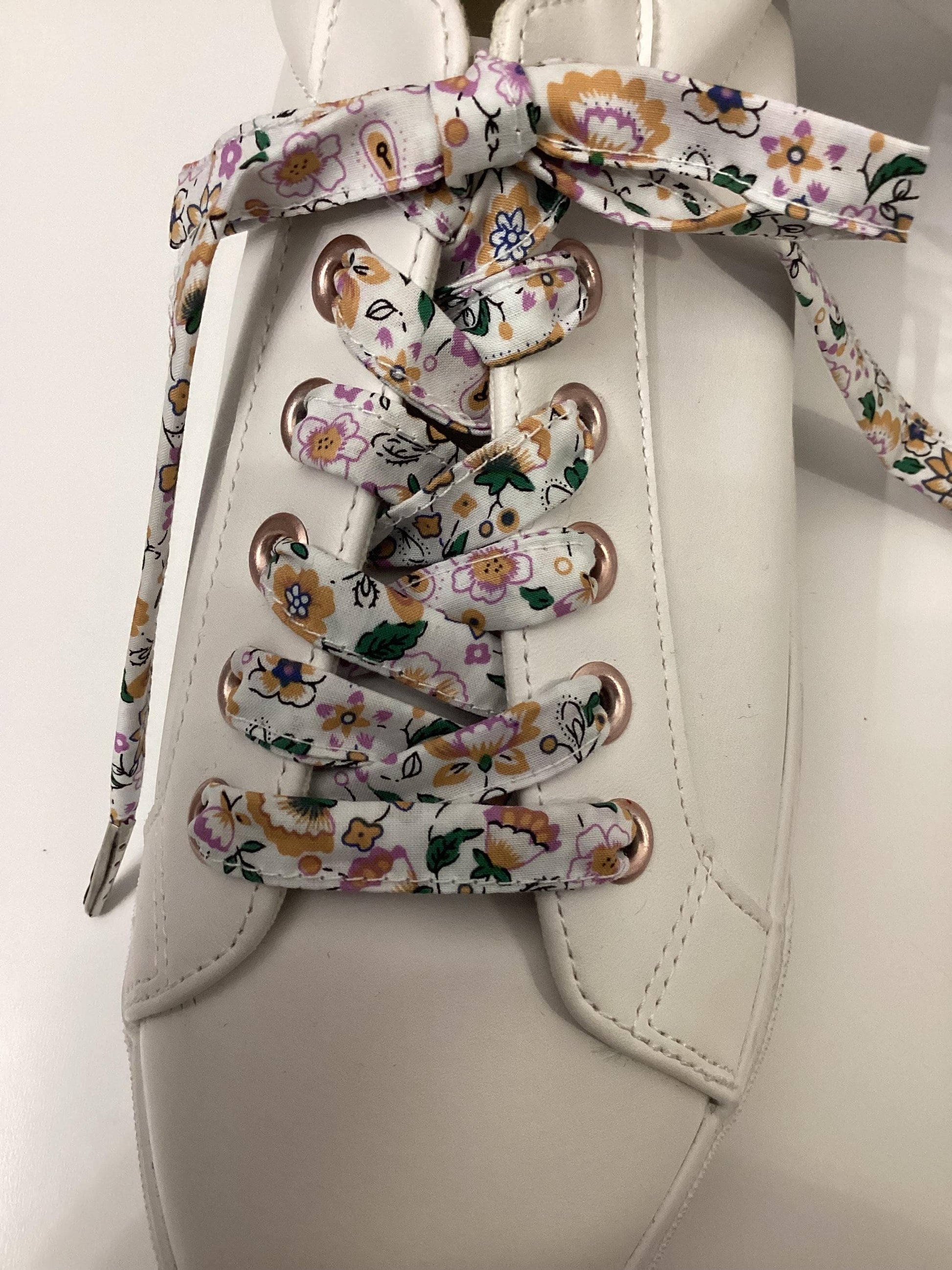 Sublimez votre tenue avec cette paire de lacets en tissu fleuri viscose bio.