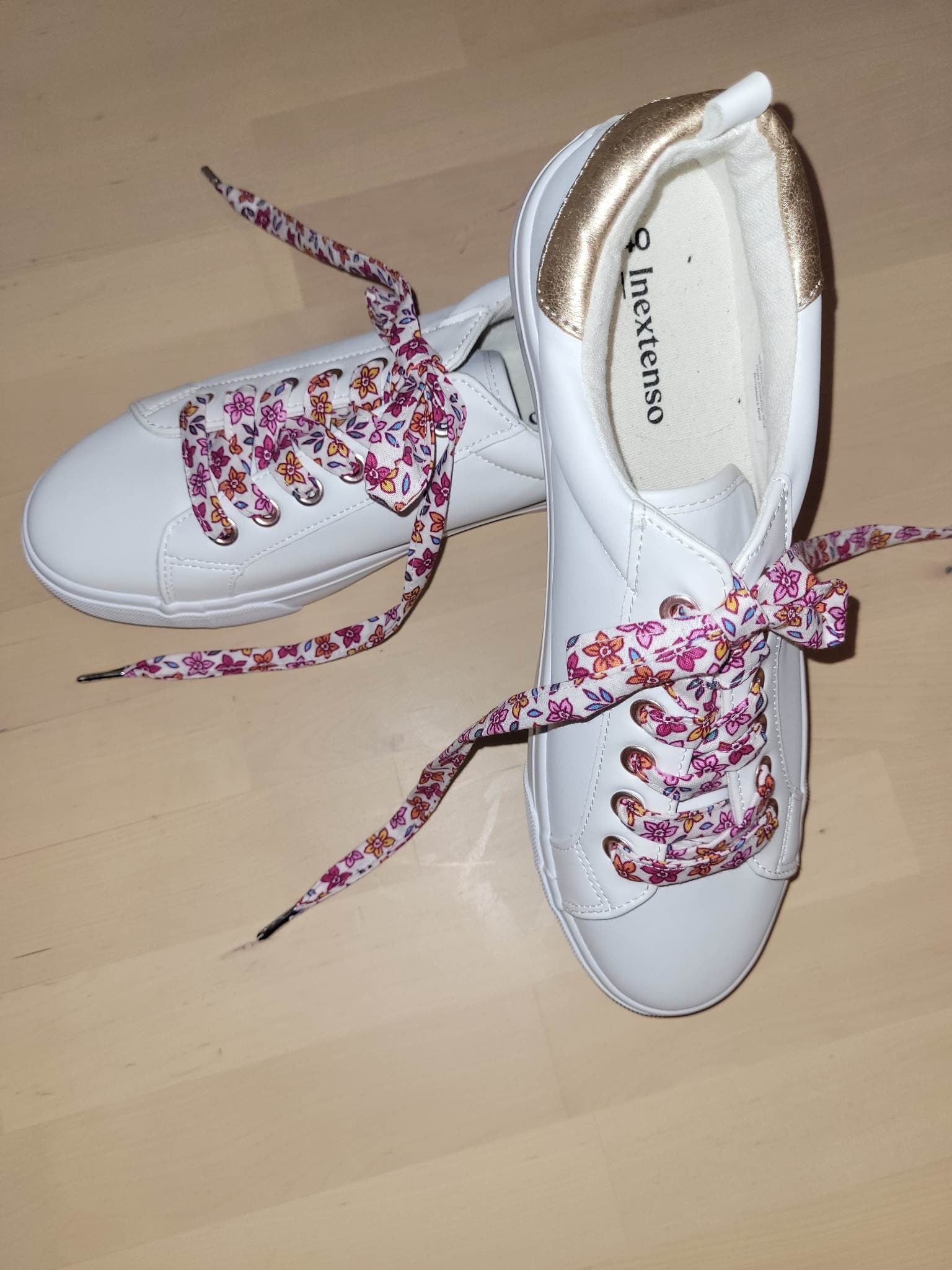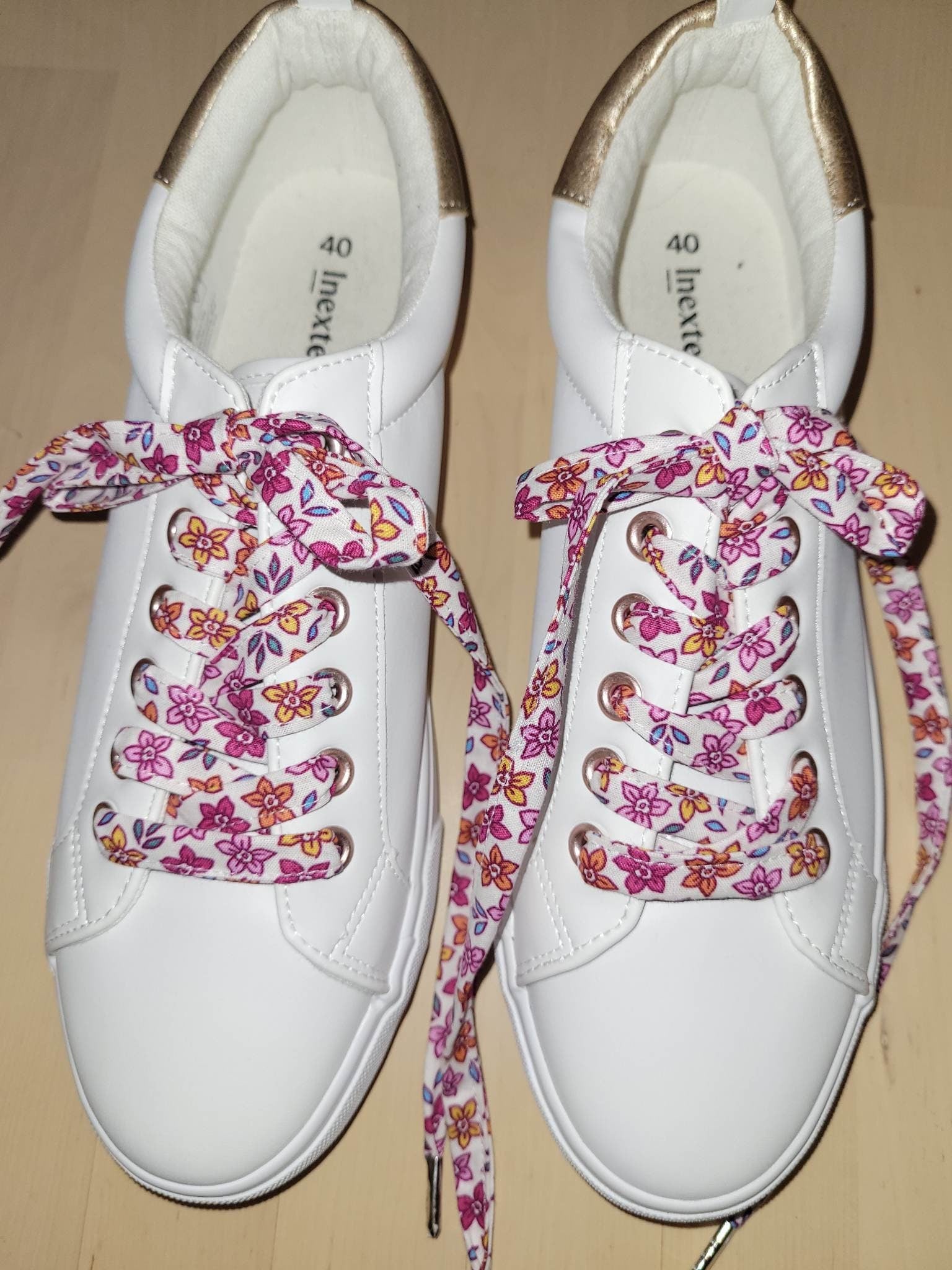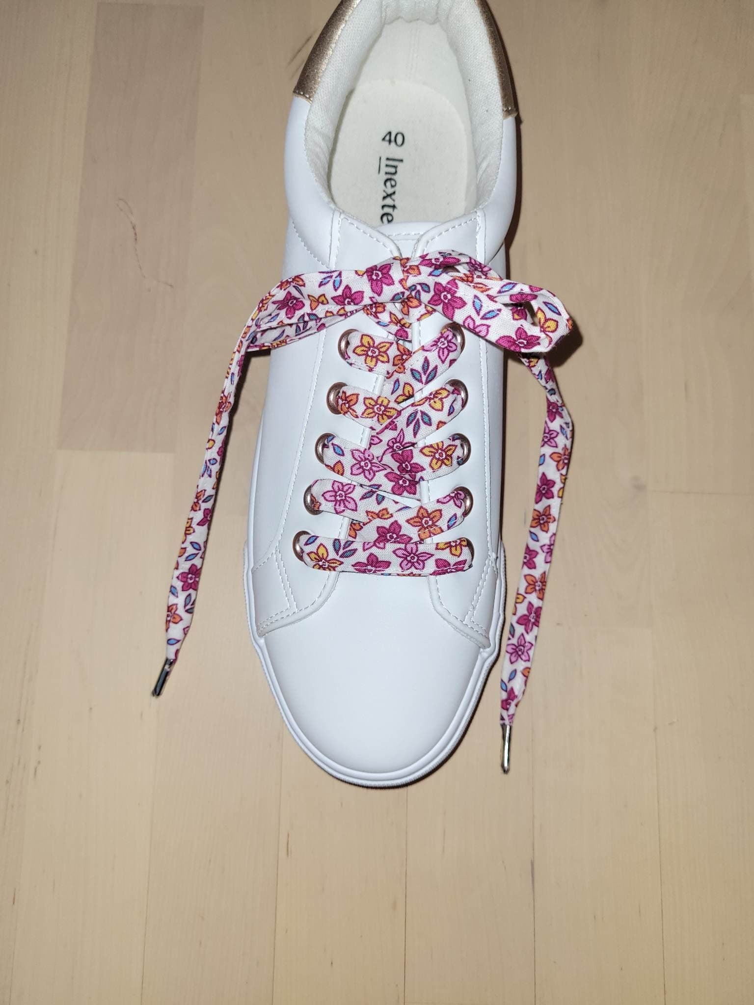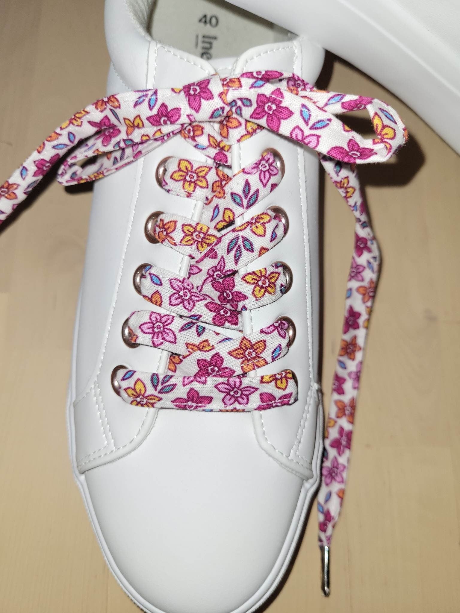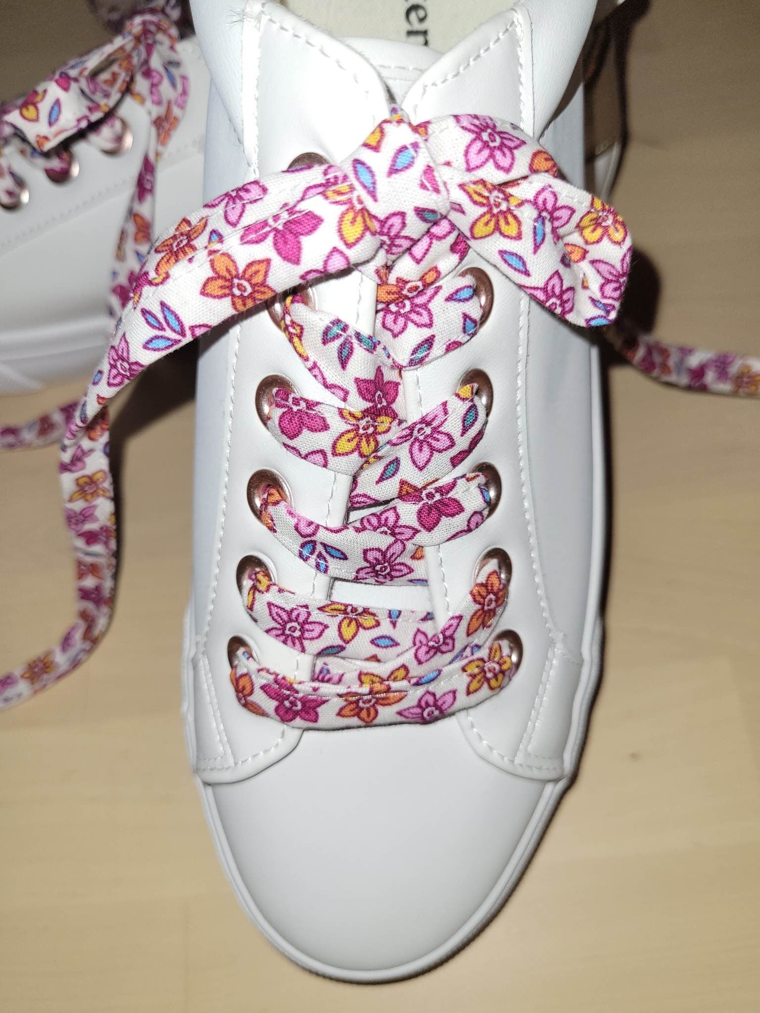 Sublimez votre tenue avec ses lacets en tissu fleurs viscose bio.