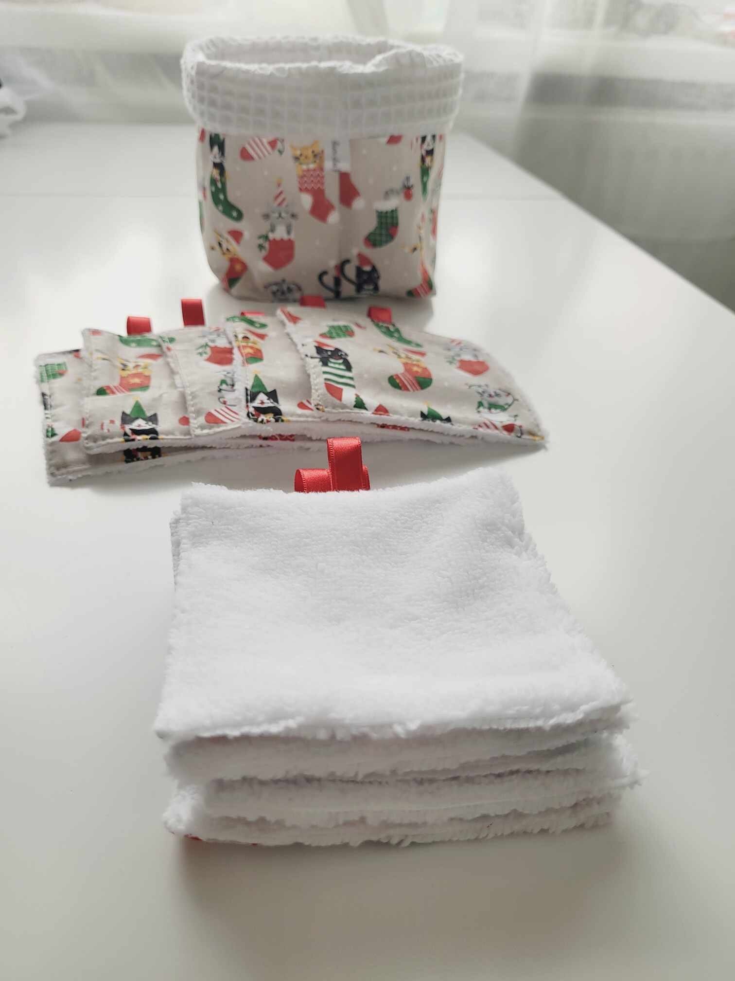 Dimension d'une lingette: 10x10cm. Lavable en machine à 40 degrès dans un filet.