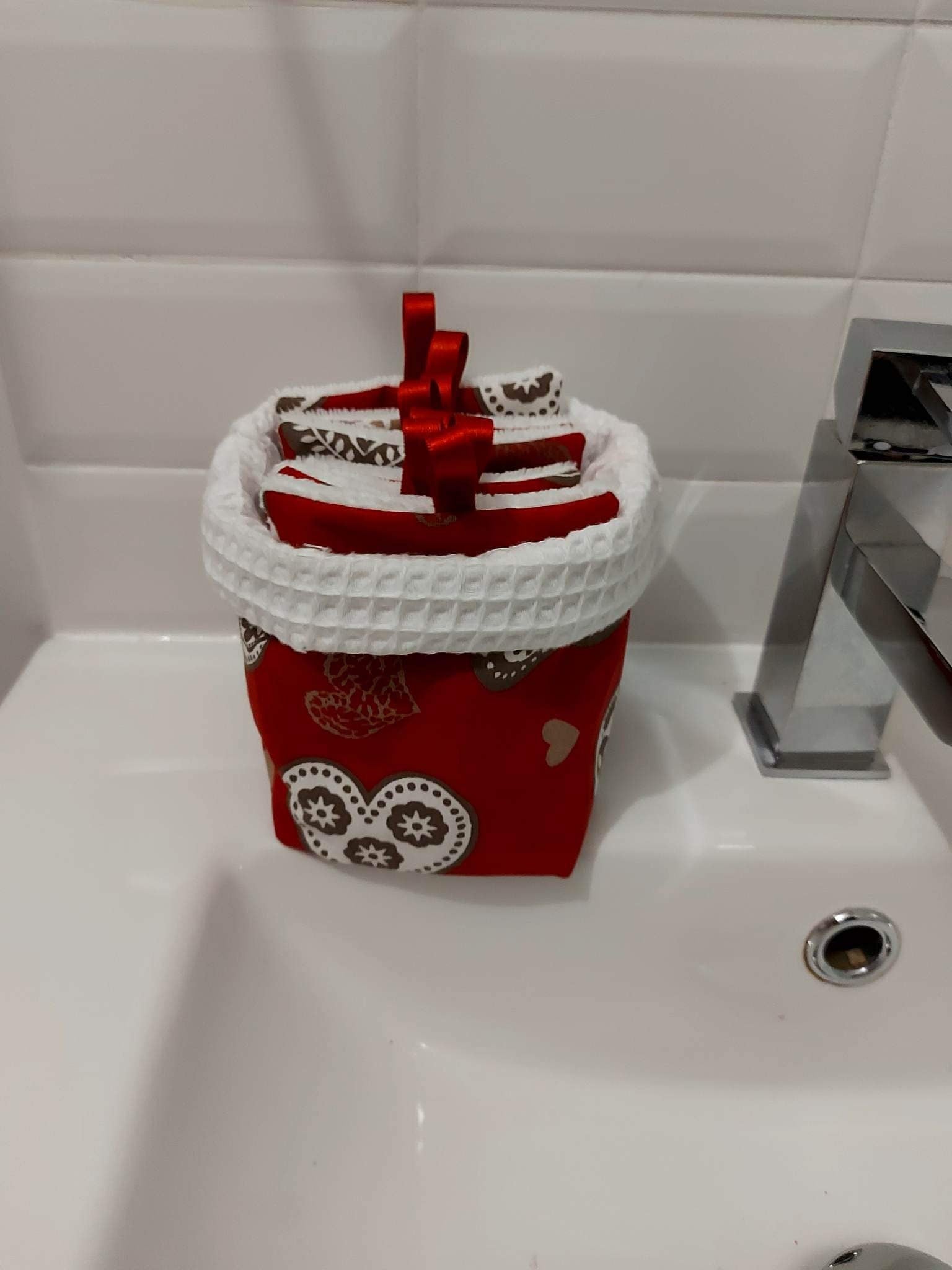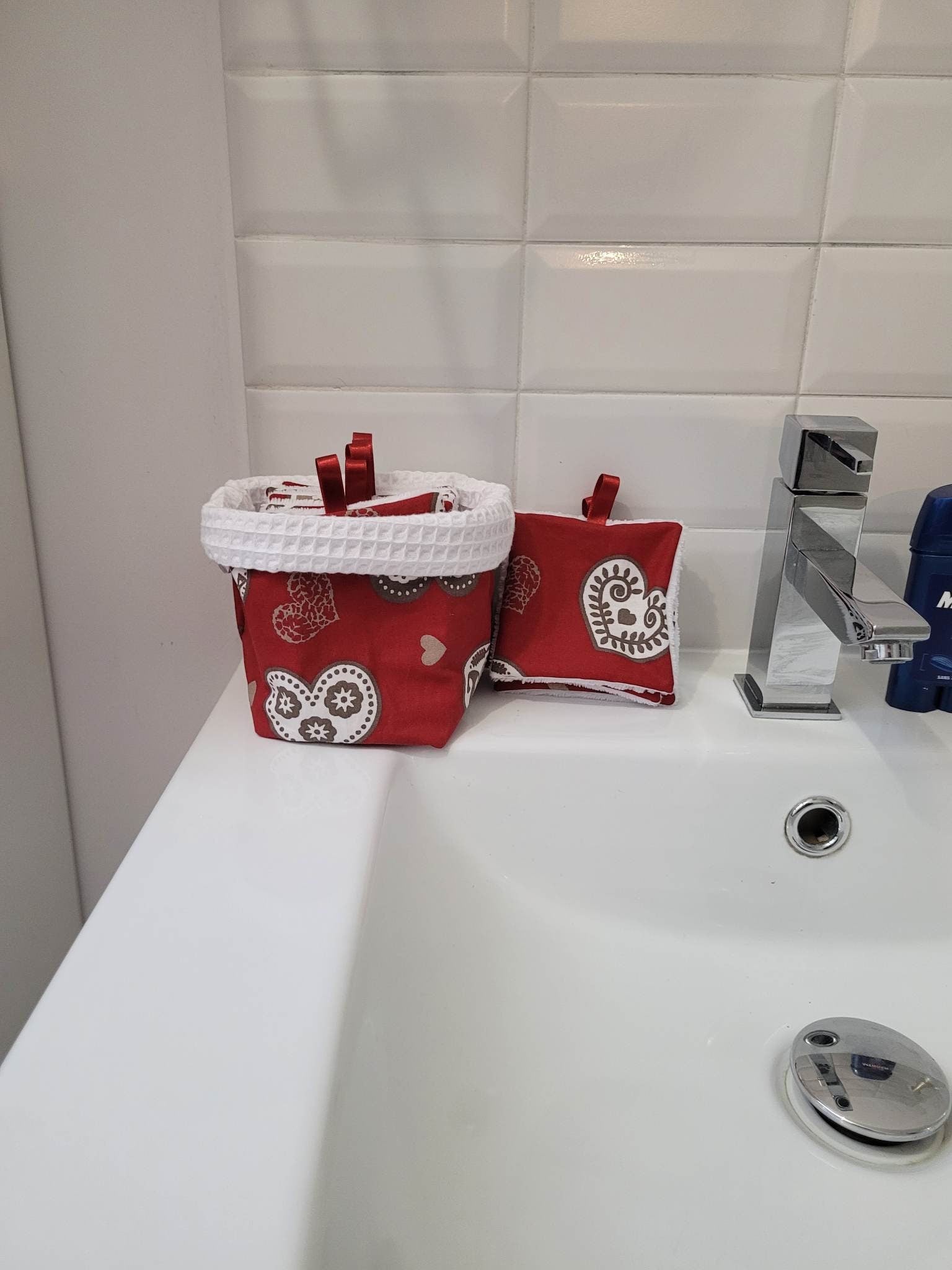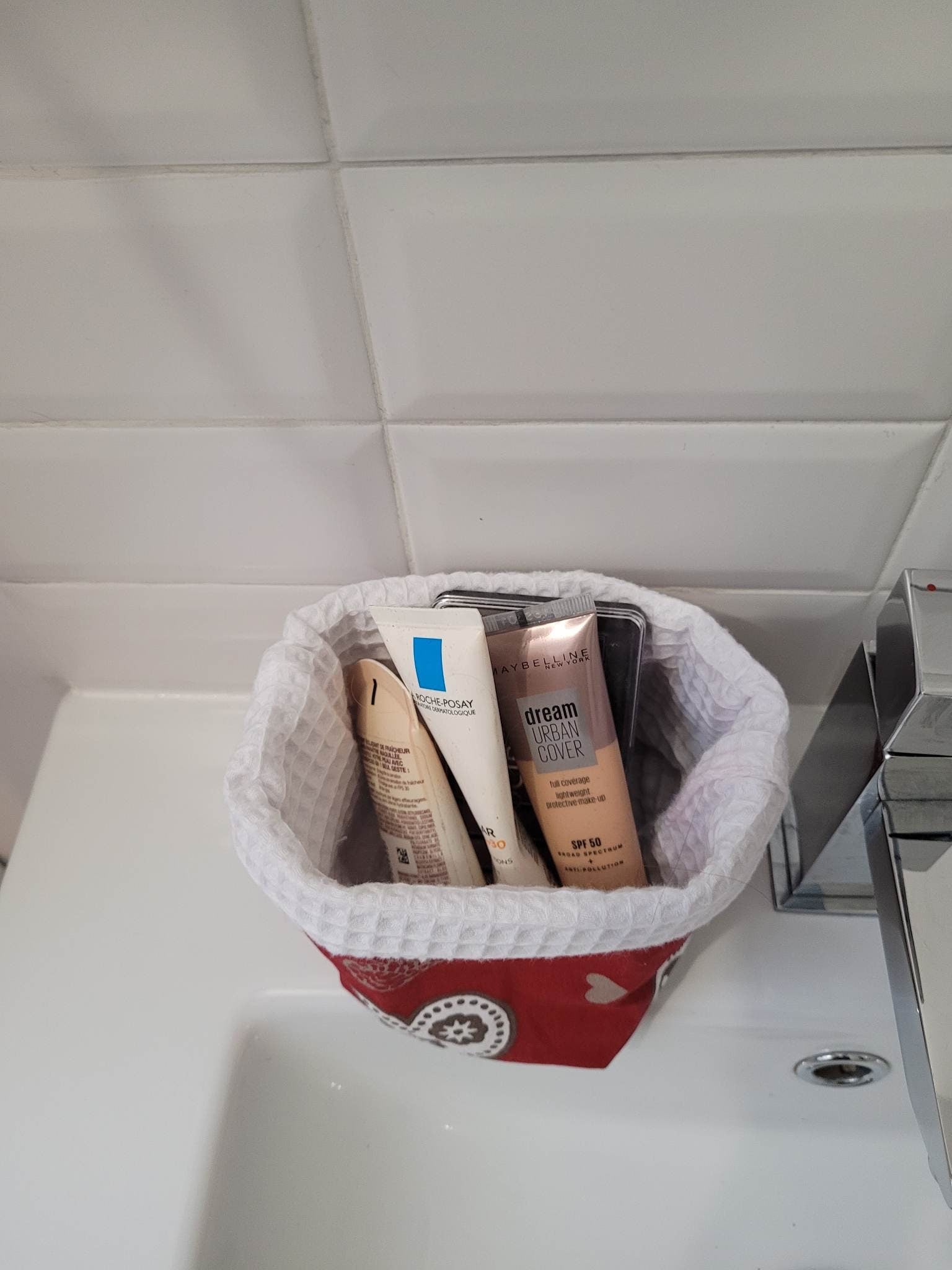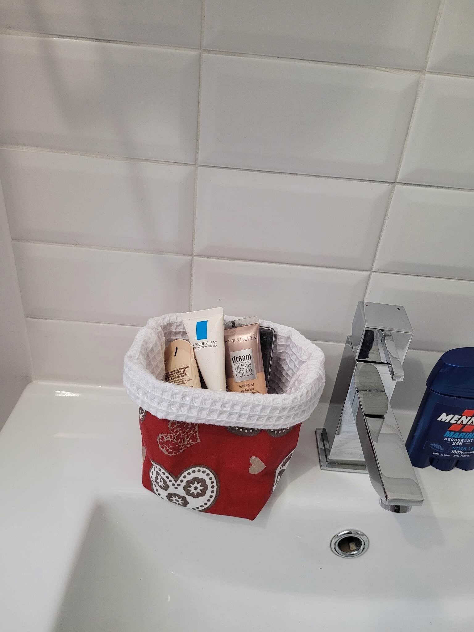 Le panier est réalisé par un tissu extérieur en coton et un tissu intérieur en nid d'abeille.