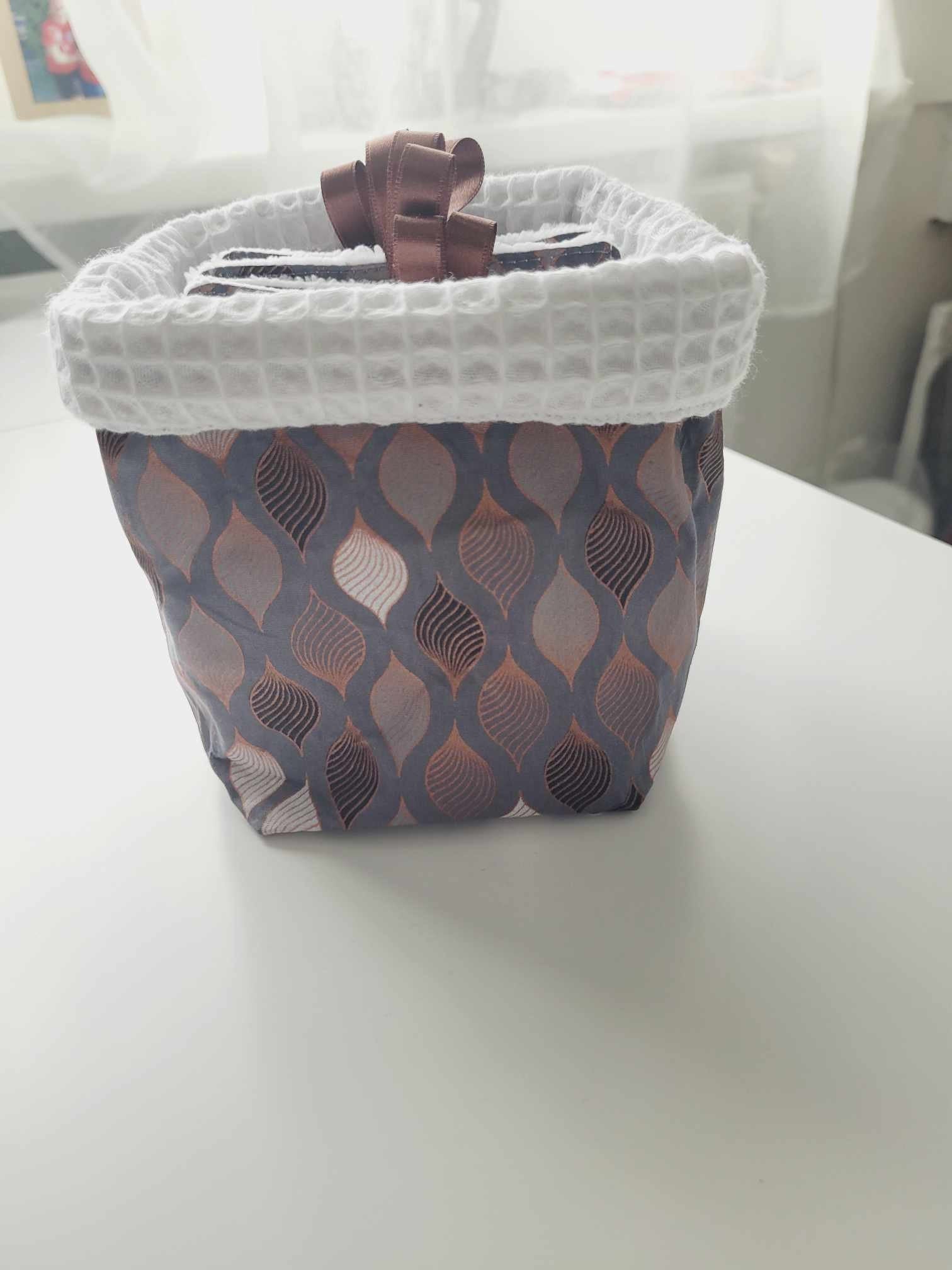Le panier est réalisé, d'un tissu extérieur en coton NOEL et d'un tissu intérieur en nid d'abeille.