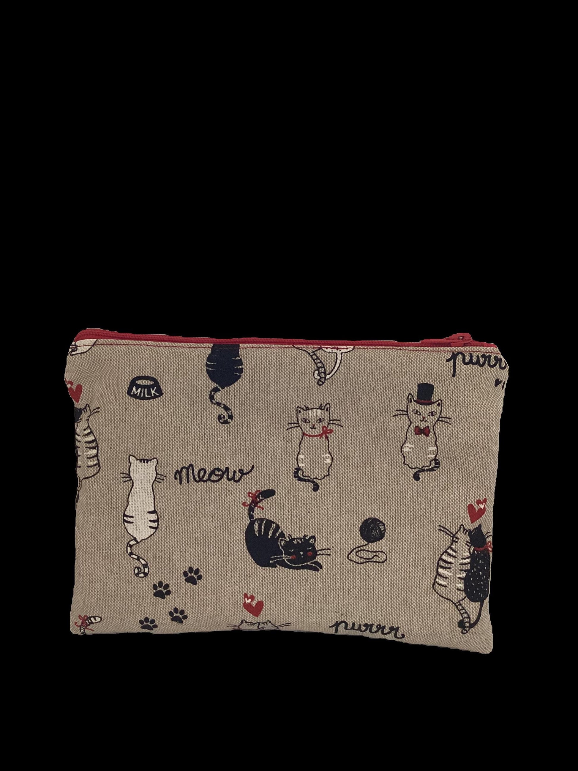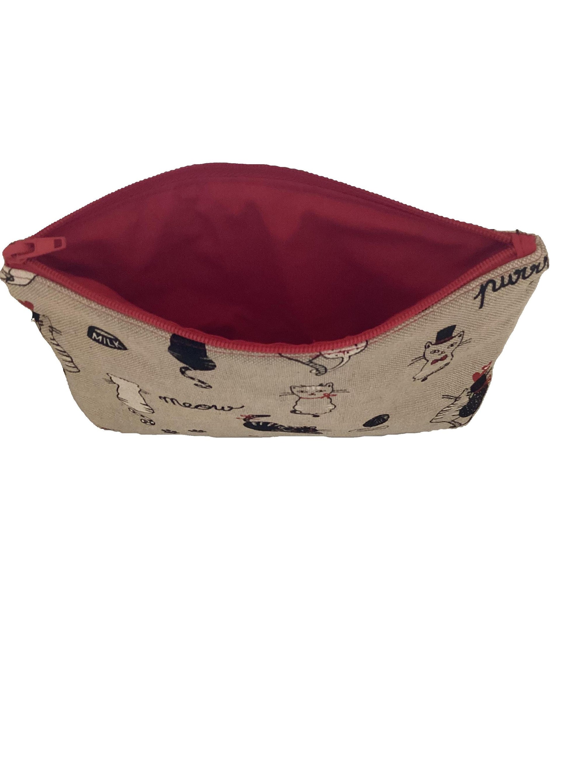 DESCRIPTION : La pochette est décrite par un tissu extérieur en coton bio Chat, et un tissu intérieur Blanc.