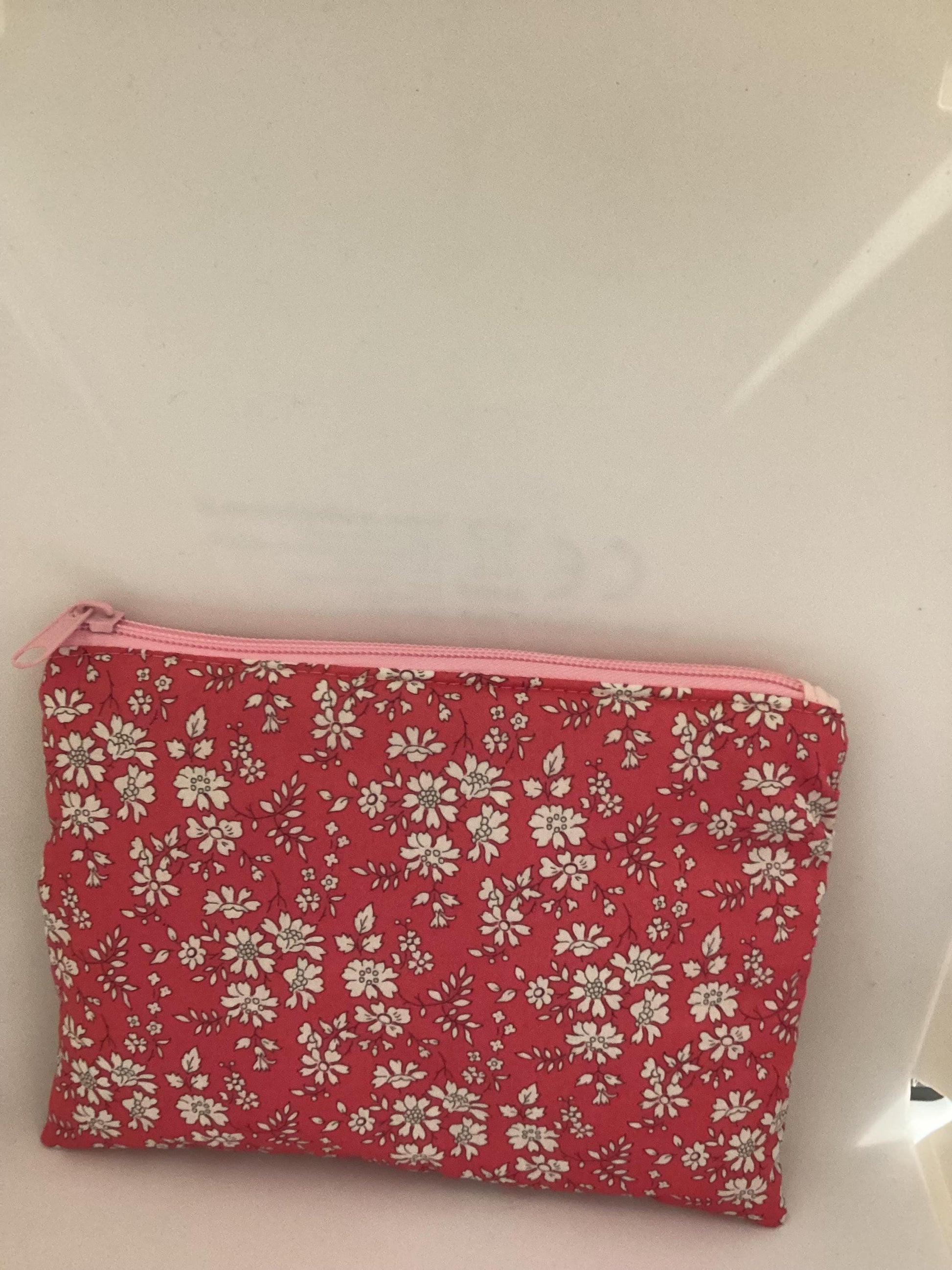DESCRIPTION : La pochette est décrite par un tissu extérieur en coton fleuri liberty fushia, et un tissu intérieur Rose.