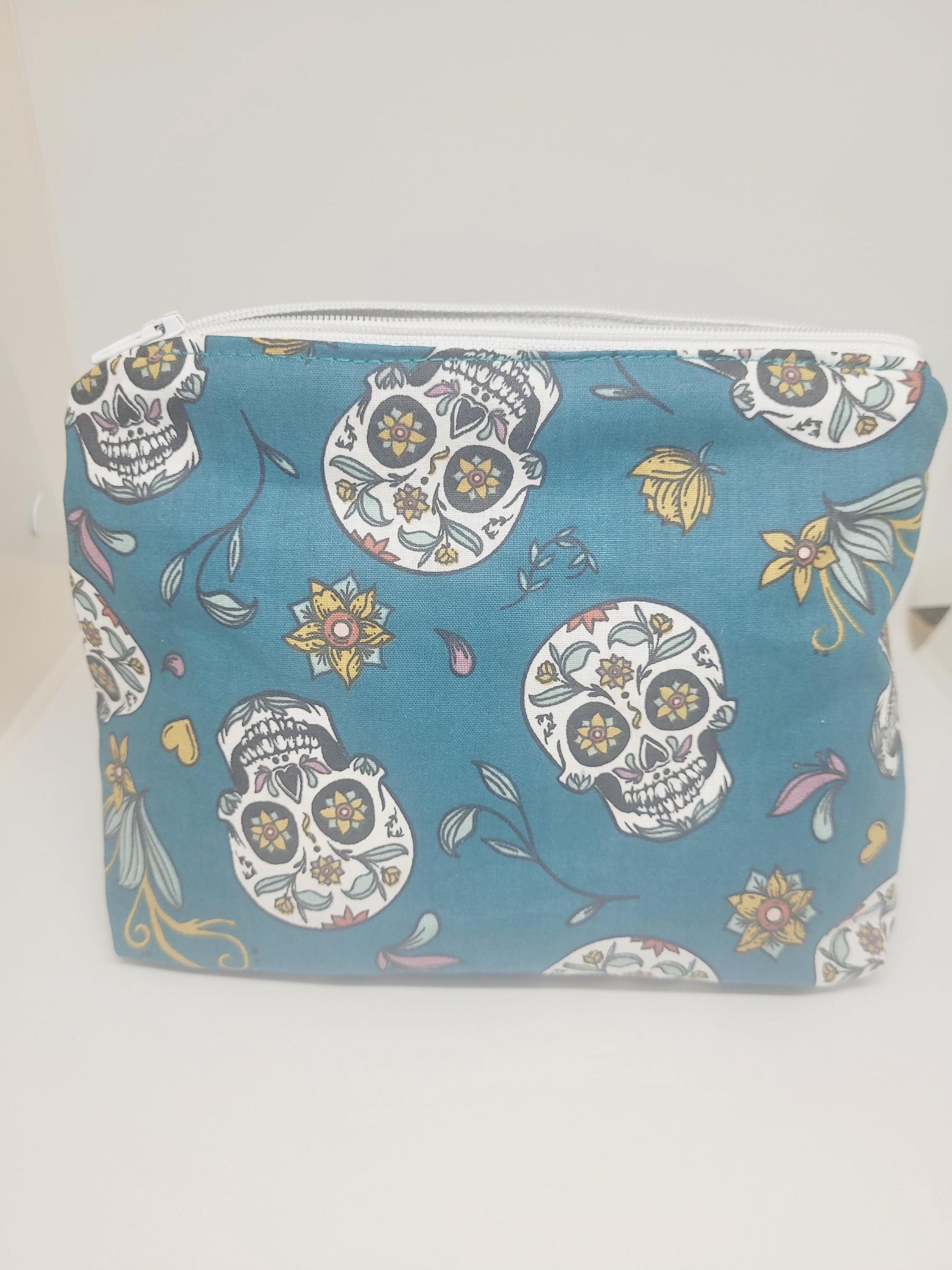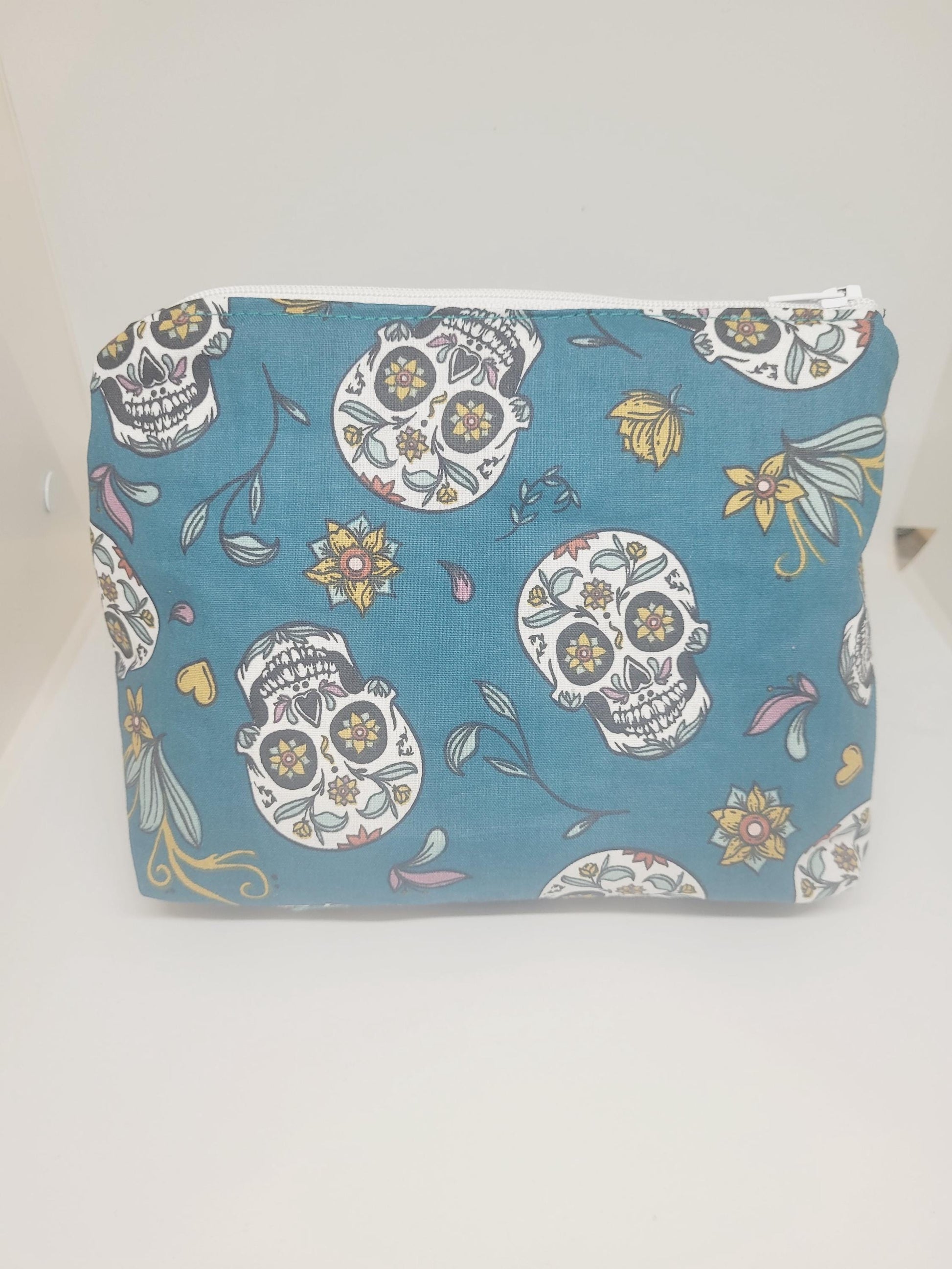 Trousse à maquillage en tissu coton imprimé et doublé avec un tissu coton.