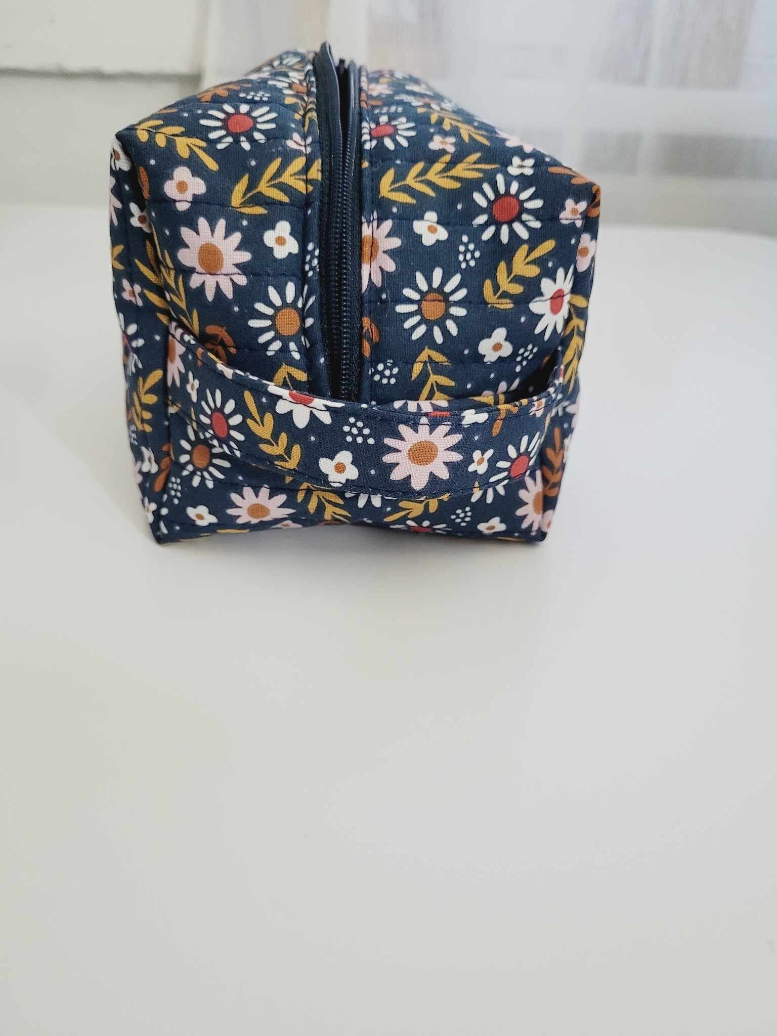 Une jolie trousse matelassée permettant de transporter ou ranger ses affaires de toilettes.